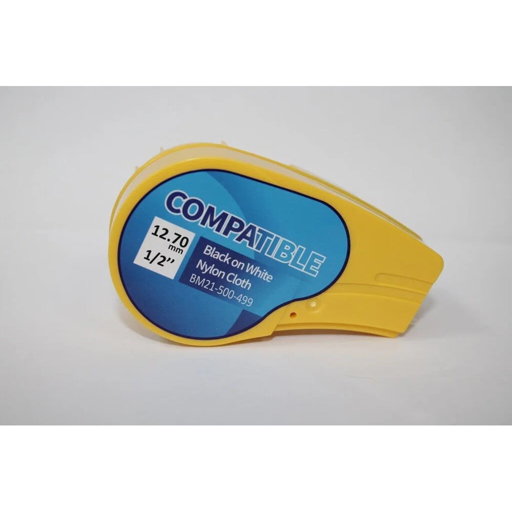 Лента нейлоновая BM21-500-499 разработана для воспроизводства на принтерах BMP21, ВМР21 Plus, BMP210 и IDPal:этикеток и ярлыков;разнообразных наклеек – идентификационных, информационных и прочих;паспортных табличек.Расходный материал для печати шириной 12,7 мм (1/2 дюйма) поставляется в намотке длиной 4,88 м на специальных кассетных картриджах, которые используются непосредственно в печатающем устройстве. Лента является полным аналогом продукта BRD110894, у них одинаковые назначения, области применения и геометрические параметры.Особенности материалаЛента BM21-500-499 – изделие белого цвета для воспроизведения данных (штрих-коды, текст, простейшая графика) в чёрном тоне. Материал создан на основе высокопрочной нейлоновой плёнки, имеет клейкую обратную сторону – для удобства размещения наклеек на поверхностях.Изделие отличается высокой механической прочностью, оно устойчиво к большинству химических веществ, применяемых в современных промышленных и сельскохозяйственных областях, включая красители, растворители, спирты, эфиры, горюче-смазочные материалы. Лента даёт возможность изготовления этикеток любой длины – она отлично режется.Сфера использованияС помощью ленты печатают чёрно-белые информационные и другие наклейки, которыми маркируют:стены, окна зданий и сооружений;промышленное, энергетическое, сельскохозяйственное, строительное и прочее оборудование;трубопроводы.