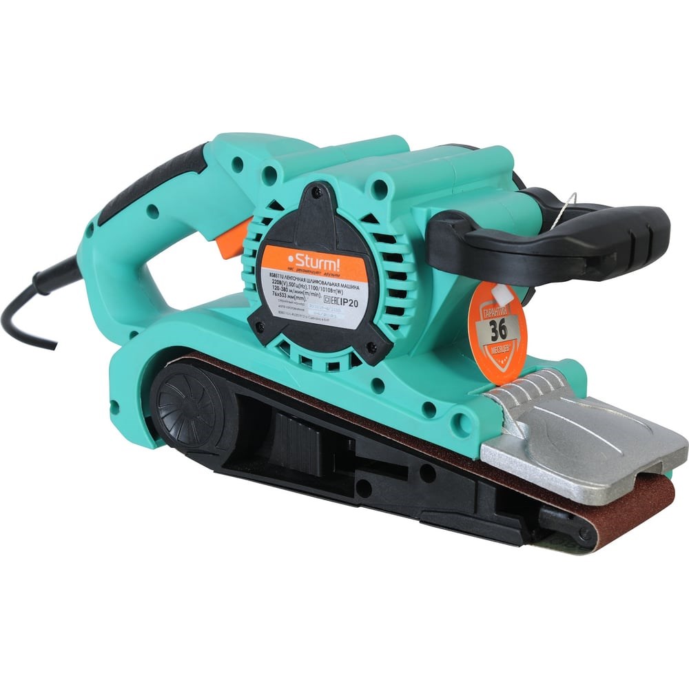 Sturm BS8511U –универсальная и производительная ленточная шлифовальная машина, рассчитанная под использование шлифовальной ленты размерностью 76х533 мм – предназначена для грубого и чистового шлифования плоских и выпуклых поверхностей, в том числе значительных по площади. Важная конструктивная отличительная особенность Sturm BS8511U от аналогов – разный размер опорных роликов: диаметр переднего ролика значительно меньше диаметра заднего – цель данного решения – сокращение до минимума мертвой зоны при обработке вплотную к препятствиям. Передняя крышка корпуса выполнена откидной, что способствует лучшему доступу в узких местах. Шлифмашина оснащена мощным 1100 Вт электромотором, позволяющим развивать значительную скорость вращения ленты, тем самым обеспечивая высокую производительность, а также качество работы: заложенный запас мощности способствует ровному поступательному ведению инструмента и эффективной обработке материалов с повышенными требованиями по качеству. Особенности: Возможность использовать верхнюю часть ленты для шлифования в труднодоступных местах– обеспечивает универсальность применения. Электронная регулировка оборотов– позволяет подобрать оптимальную скорость движения ленты применимо к различным материалам. Система быстрой замены ленты– облегчает и ускоряет процесс замены оснастки. Функция быстрого доступа к щеткам– возможность самостоятельной замены щеток, без необходимости разбора элементов корпуса.