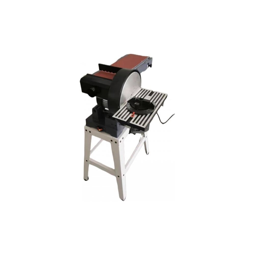 Ленточно-дисковый шлифовальный станок эффективен в металлообрабатывающей промышленности. Оборудование используется для финишной полировки поверхностей деталей. Корпус станка выполнен из литого алюминия. Он имеет два рабочих стола, один для ленточного, другой для дискового шлифования, что удобно, так как при переключении между операциями нет необходимости переустанавливать столы. Рабочие столы изготовлены из алюминия и имеют пазы для установки угловых упоров. Угол наклона стола для ленточного шлифования составляет 0-60°, а для дискового шлифования - 0-45°. Узел ленточного шлифования является поворотным. Абразивы стандартные: лента: 1219x152 мм, диск: диаметр 228 мм. В комплекте поставляется сборная стальная станина, к которой станок крепится 4 болтами. Двигатель асинхронный.