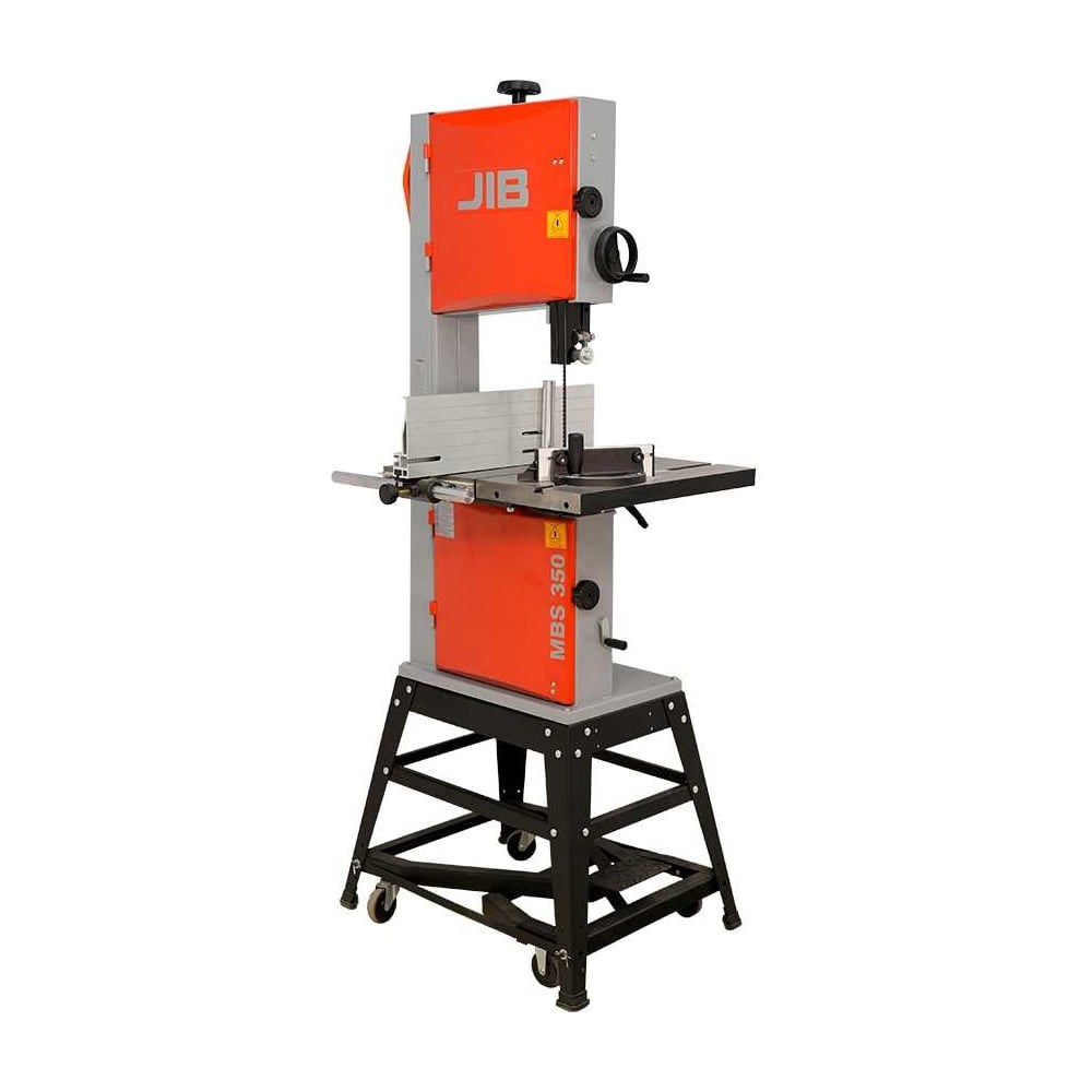 Ленточнопильный станок JIB MBS 350 1,1 кВт, 230 B 0203020009000 предназначен для пиления древесины твердых пород, материалов-производных древесины, материалов, аналогичных пробке, твердой резины и твердой пластмассы. Прочный и жесткий стальной корпус обеспечивает устойчивость при работе. Натяжение приводного ремня регулируется рукояткой. У станка имеется две скорости движения полотна пилы – 820 м/мин для работ по древесине и 380 м/мин для некоторых пластмасс и акриловых пластмасс. Механизм наклона стола используется для выставления перпендикулярности стола относительно пилы. Мощный асинхронный двигатель гарантирует бесперебойную работу. Внимание! Мобильная база в комплект не входит и приобретается отдельно.