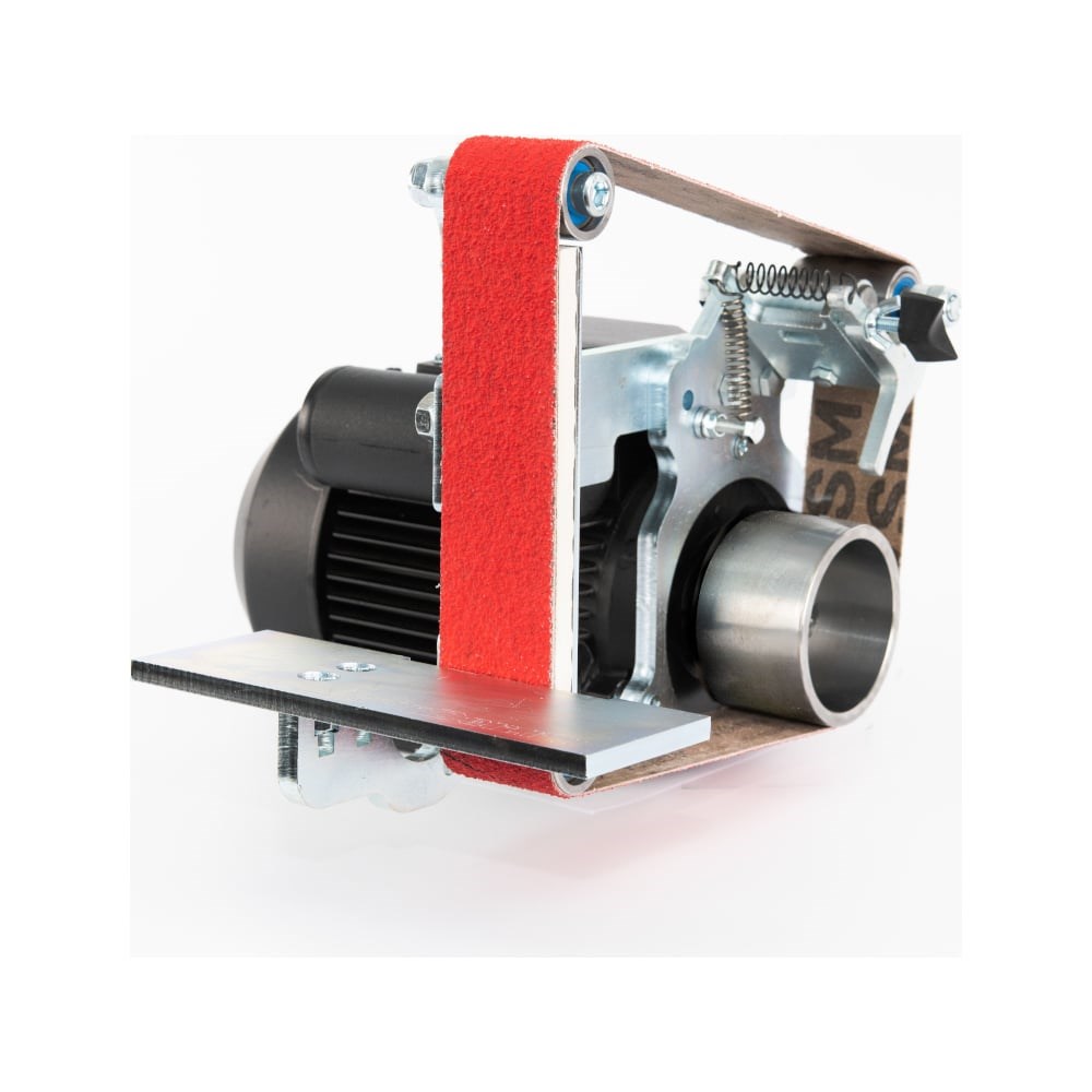 Ленточный гриндер Мосгриндер Хозяин 915 1.1кВт + ленты 10шт БАЗ 915x50мм MG-915A предназначен для плоского шлифования заготовок, удаления сварных швов, обработки цилиндрических деталей, заточки лезвий режущего инструмента и изготовления ножей. Благодаря увеличенной длине абразивной шкурки, возможно производить обработку материала не только при помощи упорной площадки, но и на провисающей ленте. Станок имеет увеличенную вертикальную рабочую поверхность 180 мм, усиленный каркас из стали 10 мм и уникальный запатентованный механизм натяжения ленты. Станок подходит как для небольших мастерских, так и для профессионального использования на предприятиях. В базовой версии Ленточный гриндер Хозяин 915 1.1 кВт оснащен конденсатором для работы от сети 220В и полностью готов к работе.