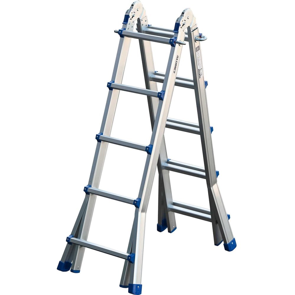 Лестница алюминиевая шарнирная телескопическая– представляет собой лестницу-трансформер, состоящую из двух основных и двух дополнительных секций, соединенных между собой стальными шарнирами. Дополнительные секции фиксируются к основным при помощи фиксатора, вставленного в ступень. Шарнины выполнены оцинкованной стали. Профиль лестницы изготовлен из высокопрочного алюминиевого сплава (ГОСТ 22233), обеспечивающего изделию прочность и легкость, что важно для транспортировки и установки. Профиль доп.секции - П-образный .Ступени выполнены с рифлением,что способствует безопасному подъёму и спуску.Особенности: лестница может использоваться в положениях: -приставная, - стремянка, -маршевая лестница.Идеальный помощник в офисе, на производстве, в быту, на даче.Лестницу можно использовать вне помещения. Конструкция стойкая к воздействию неблагоприятных погодных условий благодаря коррозионностойким свойствам алюминия. Этот фактор является одним из главных преимуществ модели.Завод – изготовитель оставляет за собой право в одностороннем порядке вносить изменения в конструкцию, в целях улучшения технических характеристик.на линейные размеры отклонение может составлять +-5 мм, на вес изделия +-5%*кол-во ступеней на фото может не совпадать с описанием.