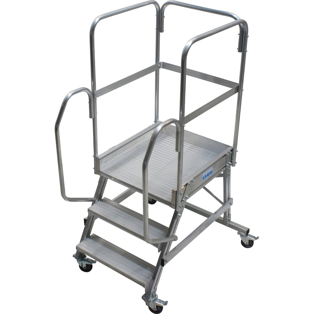 Лестница с площадкой Krause 3 ступени 820013 предназначена для работ на небольшой высоте. Оборудована поворотными роликами с фиксаторами, для удобства перемещения. Выдерживает нагрузку до 150 кг. Для безопасности предусмотрено ограждение, переходящее в перила.