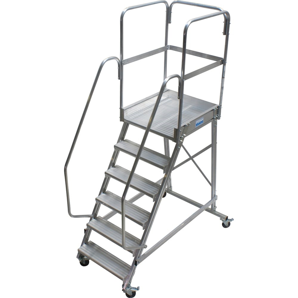 Лестница с площадкой Krause 6 ступеней 820044 может использоваться при различных ремонтных и строительных работах, а также при работе с высокими стеллажами. Оборудована поворотными роликами с фиксаторами, для удобства перемещения. Выдерживает нагрузку до 150 кг. Для безопасности предусмотрено ограждение, переходящее в перила.