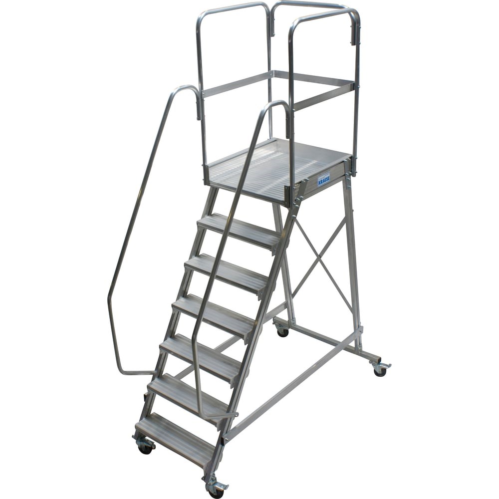 Лестница с площадкой Krause 7 ступеней 820051 может использоваться для работы с высокими стеллажами, а также для выполнения различных ремонтных работ. Оборудована поворотными роликами с фиксаторами, для удобства перемещения. Выдерживает нагрузку до 150 кг. Для безопасности предусмотрено ограждение, переходящее в перила.
