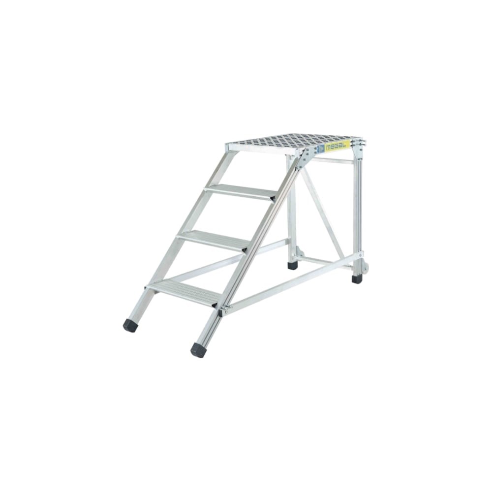 Лестница-подмости MEGAL ЛП-0.8 051603 предназначена для обеспечения комфортных условий труда при выполнении монтажных, сервисных и других работ на небольших высотах. Для большей устойчивость ножки модели укомплектованы резиновыми противоскользящими башмаками и комплектом колес для удобства перемещения по рабочей территории. Широкие ступени глубиной 16 см из специального рифленого профиля обеспечивают безопасный подъем и комфорт в работе. Верхняя площадка имеет размер 60х70 см. Наклонный лестничный маршрут расположен под углом 45 градусов. Обратите внимание! Количество ступеней не соответствует представленному на фото.