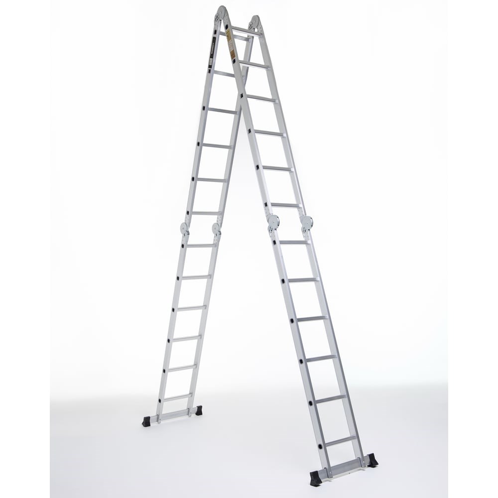 Лестница-трансформер - это удобный универсальный инструмент для работ на разной высоте. Она может использоваться как двусторонняя стремянка и приставная лестница. В режиме помост не используется. Трансформер объединяет в себе функции нескольких лестниц и подходит как для бытовых задач, так и для профессионального использования.Лестница-трансформер состоит из нескольких секций, соединенных между собой шарнирами, которые обеспечивают подвижность, позволяя менять форму и положение лестницы. В сложенном виде конструкция очень компактна и легко помещается в шкаф, кладовку или багажник автомобиля.По обоим краям лестницы установлены поперечные опоры (траверсы) с пластиковыми наконечниками (“башмаки”). Они обеспечивают надежную фиксацию во время работы и предотвращают скольжение.Трансформеры изготавливаются из прочного алюминия, благодаря чему обладают небольшим собственным весом и стойкостью к коррозии: стремянку можно использовать на открытом воздухе и даже под атмосферными осадками. Алюминиевая лестница трансформер — надёжная конструкция, которая подойдёт для выполнения различных работ. Перемещать её не составит труда, так как лестница имеет небольшой вес и компактный габаритный размер. Ширина секции 350мм. Рифленые ступеньки обеспечат хорошее сцепление стопы с поверхностью. Противоскользящие заглушки из резинопластика не поцарапают полы и добавят конструкции устойчивости на скользких и неровных покрытиях.