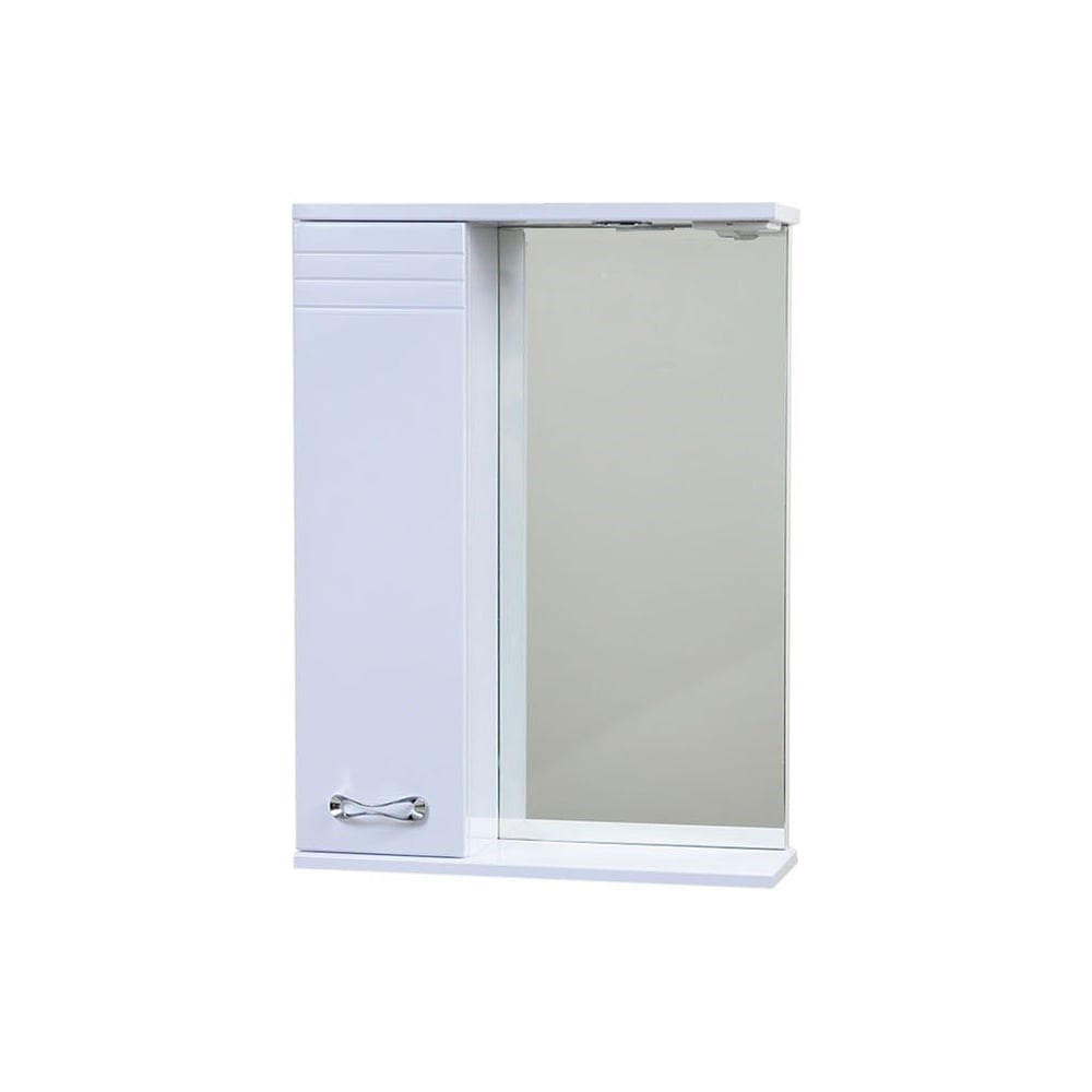 Зеркало со шкафчиком Emmy "РИО 50" оснащено одним светильником с блоком розетка/выключатель. Шкафчик расположен с левой стороны. Корпус выполнен из белого ЛДСП, фасад зеркала изготовлен из качественного и высокоплотного МДФ с пленкой ПВХ. Плавное закрывание дверцы обеспечивают петли с доводчиком. Внутри шкафа две стеклянные полки. Поставляется в собранном виде.