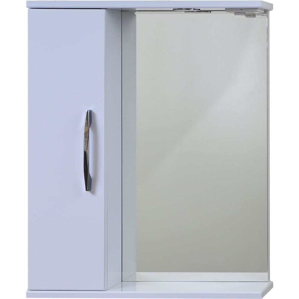 Зеркало со шкафчиком Emmy РОКАРД 60 см. Шкафчик расположен с левой стороны. Оснащено одним светильником с блоком розетка/выключатель. Корпус и фасад зеркала изготовлен из качественного и высокоплотного МДФ с пленкой ПВХ белого цвета. Плавное закрывание дверцы обеспечивают петли с доводчиком. Внутри шкафа две стеклянные полочки. Поставляется в собранном виде. Дополнить комплект так-же можно изделиями из коллекции РОКАРД