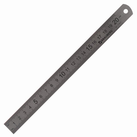 Линейка металлическая 20 см, BRAUBERG, европодвес, 210631