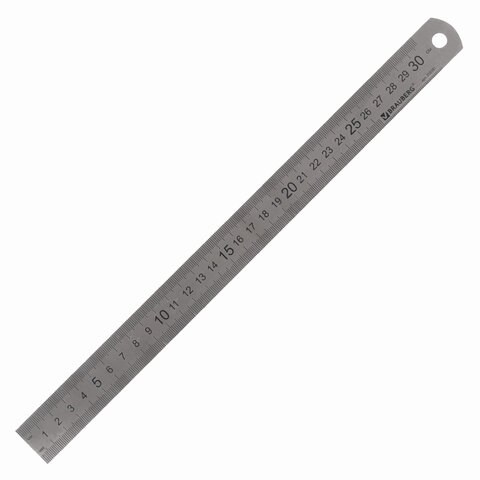 Линейка металлическая 30 см, BRAUBERG, европодвес, 210381