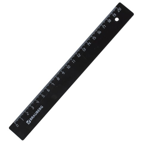 Линейка пластиковая 20 см, BRAUBERG, черная, 210607