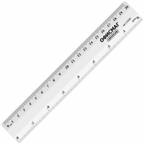 Линейка пластиковая 20 см, ОФИСМАГ, прозрачная, европодвес, 210285