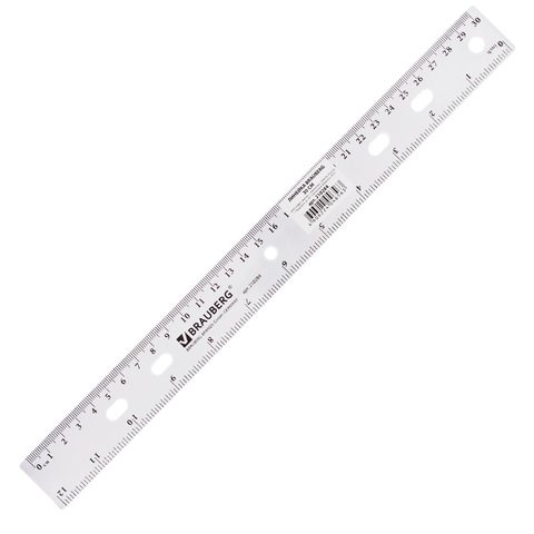 Линейка пластиковая 30 см, BRAUBERG "Crystal", прозрачная, 210284