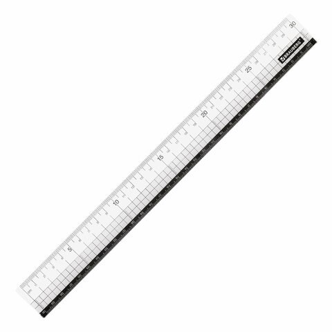 Линейка пластиковая 30 см BRAUBERG, прозрачная, черно-белая печать, европодвес, 210743