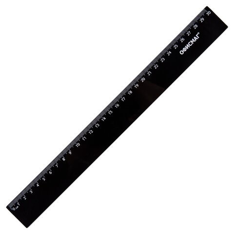 Линейка пластиковая 30 см, ОФИСМАГ, черная, пакет, 210778