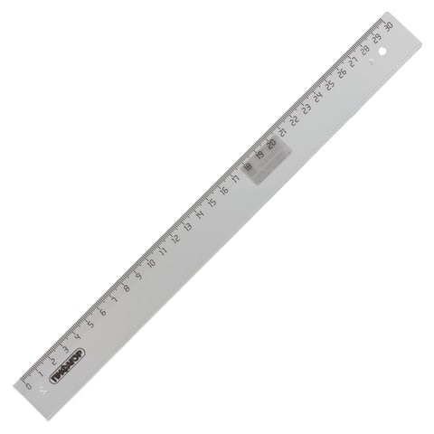 Линейка из прочного прозрачного пластика. Имеет безопасные закруглённые углы и четкую контрастную миллиметровую шкалу. Длина шкалы составляет 30 см.