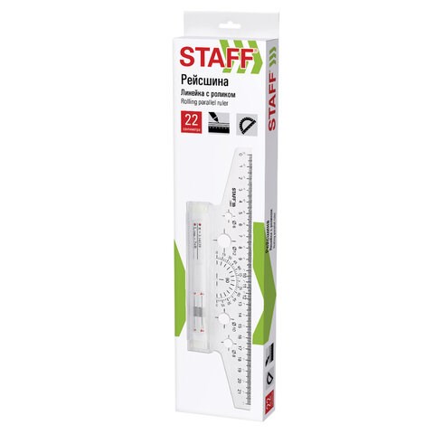 Линейка с роликом (рейсшина) 22 см, металлический ролик, картонная коробка, STAFF, 210869