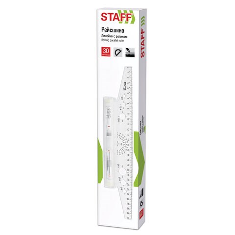 Линейка с роликом (рейсшина) 30 см, металлический ролик, картонная коробка, STAFF, 210870