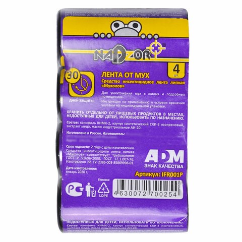 Липкая лента от мух мухоловка КОМПЛЕКТ 4 шт., NADZOR, IFR001P