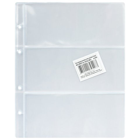 Листы-вкладыши для денежных купюр для альбома "Оптима" М9-05, комплект 5 шт., 200х250 мм, 3 кармана, ЛМБ-03