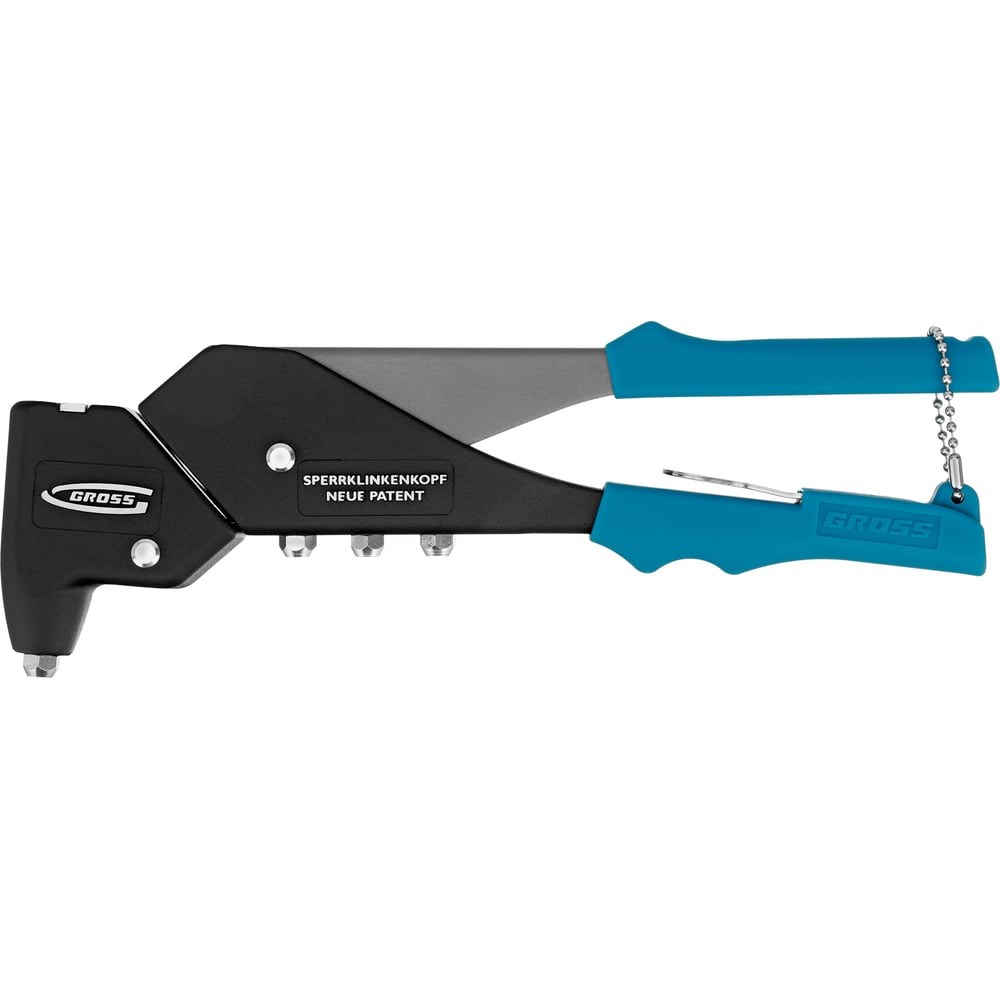 Литой усиленный заклёпочник Gross 40405, поворотный 0-360 градусов, применяется для соединения листовых заготовок, легких строительных конструкций и металлопрофиля. Инструмент совместим с заклёпками — стальными 2,4-3,2 мм, нержавеющими 2,4 мм и алюминиевыми 2,4-4,8 мм. Для всех размеров крепежей имеются соответствующие головки. Рабочая часть вращается на 360 градусов, поэтому инструмент оптимально подходит для работы в труднодоступных местах. Заклёпочник используется в профессиональной сфере — для строительства и ремонта, а также производства оборудования и мебели.