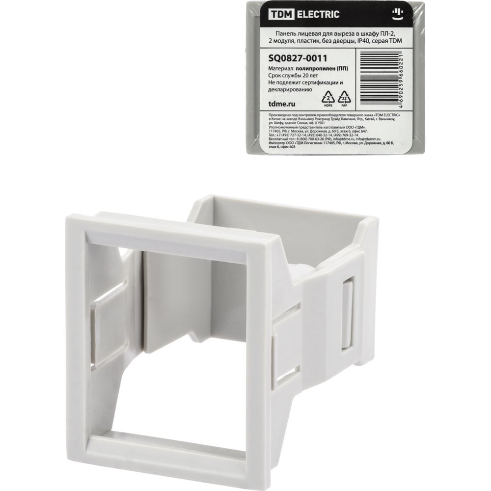 Лицевая панель TDM ELECTRIC для выреза в шкафу ПЛ-2, 2 модуля, пластик, без дверцы, IP40, серая SQ0827-0011