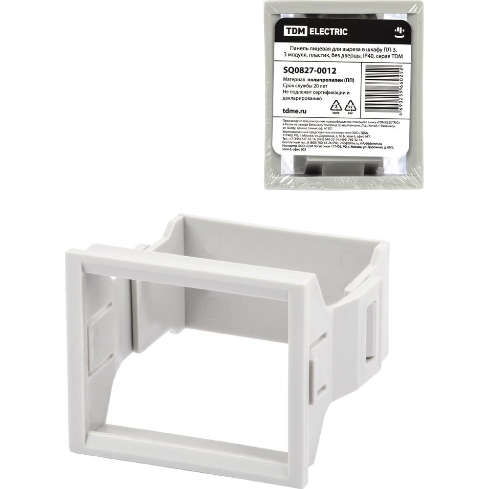 Лицевая панель TDM ELECTRIC для выреза в шкафу ПЛ-3, 3 модуля, пластик, без дверцы, IP40, серая SQ0827-0012
