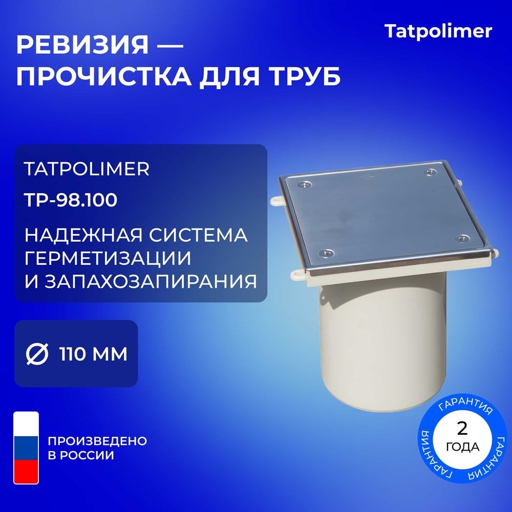 Лючок прочистка/ревизия Татполимер ТП-98.100 с пробкой и крышкой DN110 29897 применяется с целью организации доступа к скрытой проводке канализационных магистралей и доступу в горизонтальные и вертикальные канализационные стояки, при необходимости их обслуживания и чистки. Ревизия-прочистка имеет декоративную крышку из нержавеющей стали, которая способна воспринимать внешние механические нагрузки. Выпускной патрубок ревизии-прочистки предназначен для соединения с любой канализационной раструбной трубой из ПВХ или ПП соответствующего диаметра.