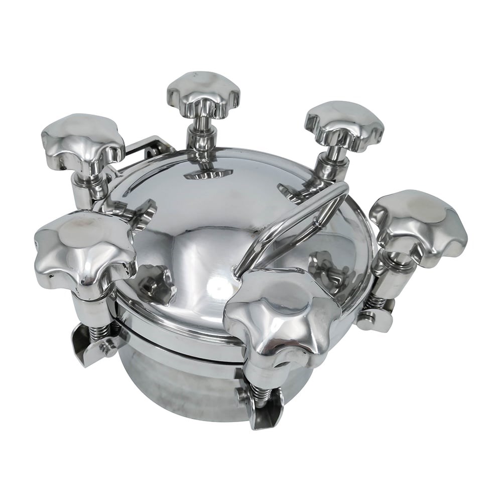 Люк круглый DN400 для баков/емкостей обладает длительным сроком службы; устойчив к агрессивным средам и перепадам температур; имеет максимальную герметичность; выдерживает давление до 5 бар; выполнен с идеальной полированной поверхностью, которая предотвращает загрязнение и развитие вредоносной флоры. Это надёжное изделие из нержавеющей стали для систем с давлением до 5 бар, которое применяется для оснащения баков и емкостей, использующихся в пищевой, химической и фармацевтической промышленности. Уплотнение люка изготовлено из материала: Силикон. Крышка люка закрывается восемью ручками/барашками, изготовленными из нержавеющей стали.