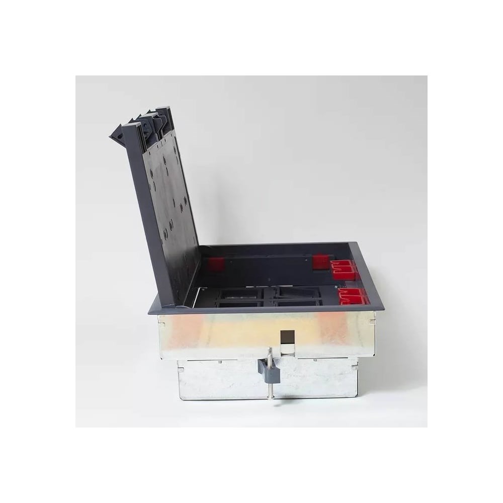 Дополнительные характеристики люка на 8 постов SPL 45x45, металл/ пластик, с металлической коробкой, IP40 300009: Верхняя панель: 320,5 х 230,5 мм. Металлическая рама: 303,5 х 215 х 50 мм. Металлическая коробка: 274 х 183 х 48 мм. Возможен монтаж, как в любые типы полов, так и непосредственно в рабочие столы. Классификация напольных люков SPL согласно NFC 61-314/EN 60670-1/ EN 60670-23. Сопротивление заземления < 0,05 Ом. Степень защиты от внешних механических воздействий: IK 07. Стойкость к приложенной сверху механической нагрузке: 3000Н (305 кг) при закрытой крышке. Номинальное напряжение 500В при сопротивлении изоляции >5 Мом. Электрическая прочность изоляции: 2000 В.