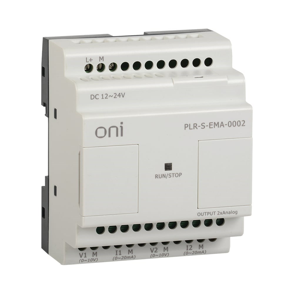 Модуль расширения 2 каналами аналогового вывода (0..10В/0..20мА). Предназначен для увеличения используемых каналов аналогового вывода программируемого логического реле ONI PLR-S. Напряжение питания 12-24 В DC.