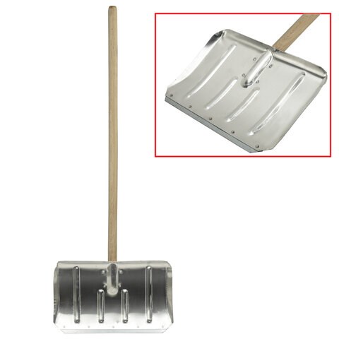 Лопата снеговая 49х30см, алюминиевая усиленная ребрами жесткости, ДЕРЕВЯННЫЙ черенок 120см, армирующая металлическая планка на клепках, ЛТСЕ