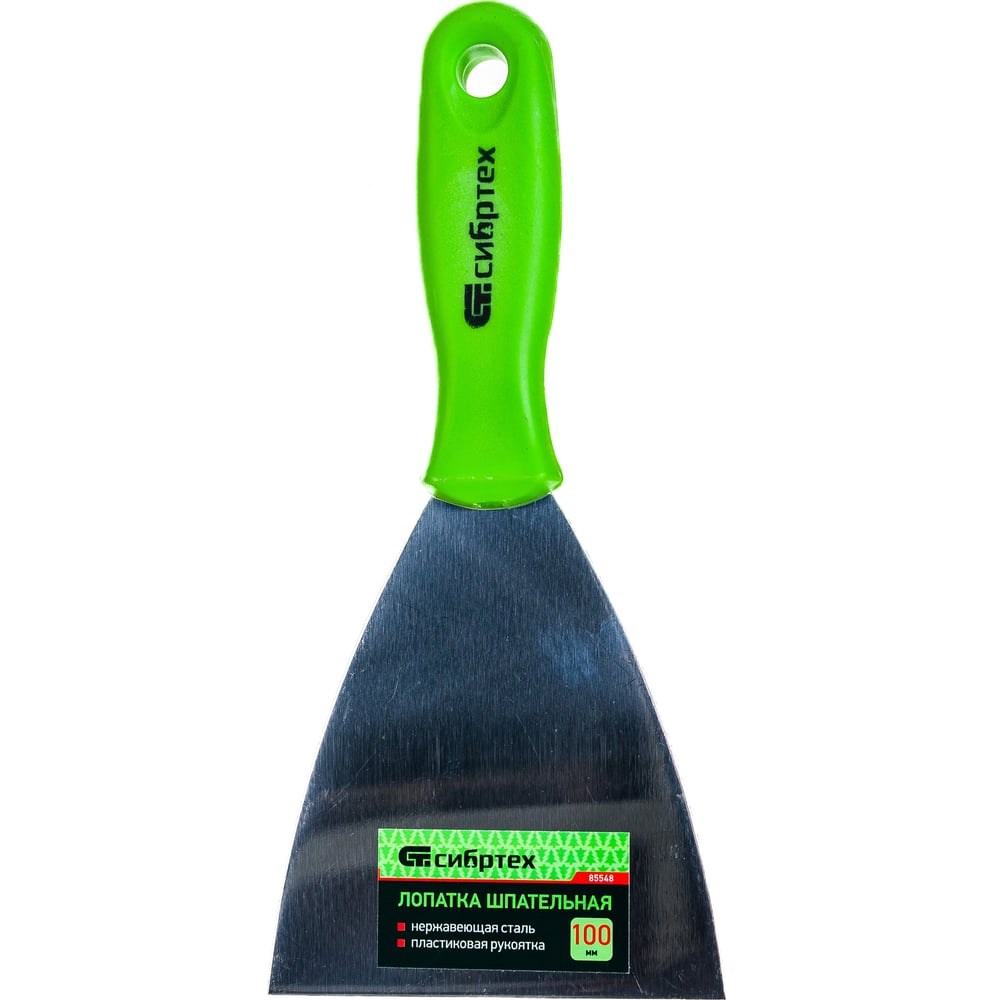 Шпательная лопатка Сибртех 85548 с полотном шириной 100 мм из нержавеющей стали, с пластмассовой ручкой, используется для нанесения, выравнивания и разглаживания строительных растворов и смесей. Пригодится для проведения ремонтно-отделочных работ, подходит для начинающих и профессиональных мастеров.