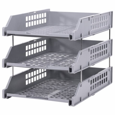 Лотки горизонтальные для бумаг, КОМПЛЕКТ 3 шт., 334х255х271 мм, серый, BRAUBERG GRAND OFFICE, 238110
