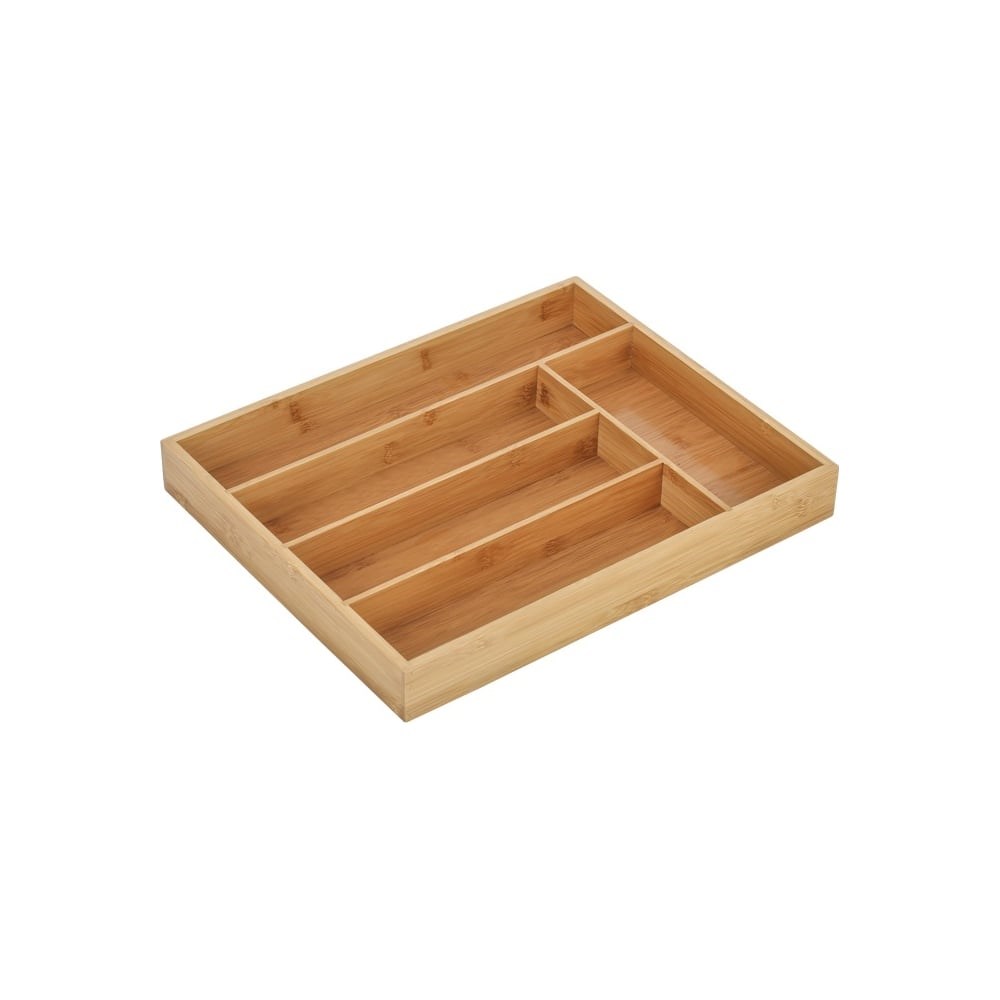 Лоток для столовых приборов UniStor TOM из 5-ти секций 211270 предназначен для хранения вилок, ложек и ножей. Подходит для выдвижных ящиков на кухне, поэтому практичен в использовании. Изготовлен из натурального бамбука, благодаря чему безопасен для здоровья. Лоток имеет водоотталкивающую пропитку, за счет чего не боится влаги.