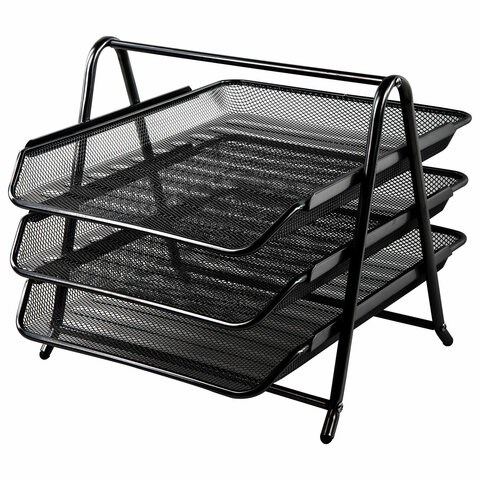 Лоток горизонтальный металлический для бумаг, 3 секции, BRAUBERG "Germanium", А4 (267х355х295 мм), черный, 231952