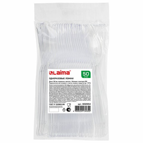 Ложка столовая одноразовая пластиковая 180 мм, прозрачная, КОМПЛЕКТ 48/50 шт., КРИСТАЛЛ, LAIMA, 602654