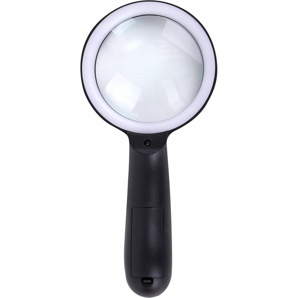 Просмотровая лупа с подсветкой предназначена для чтения, просмотра карт, мелких рисунков, шкал, схем, в том числе при отсутствии света или слабом освещении. Усовершенствованная технология освещения, комфортное увеличение. Корпус изделия изготовлен из пластика черного цвета. Увеличение линзы 10х, диаметр 90 мм. Лупа оснащена 12 светодиодными лампами, расположенными в форме кольца, обладающими ярким и мягким светом. Переключатель имеет эргономичную форму, удобен в использовании. Для питания подсветки используются 3 батарейки ААА (в комплект не входят).