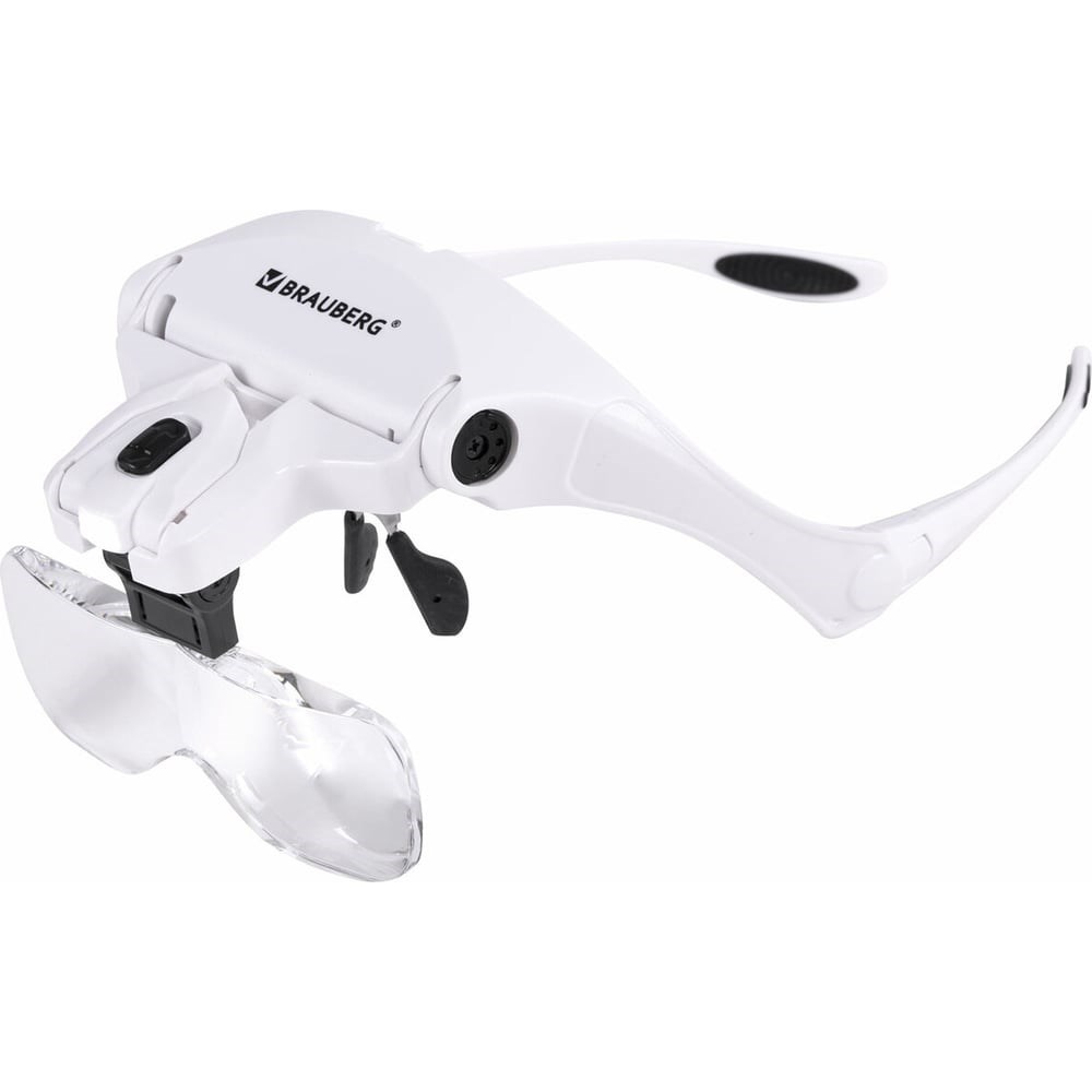 Налобная лупа BRAUBERG – это пять увеличений в диапазоне от 1х до 3,5х, встроенная светодиодная подсветка и возможность менять линзы в любой момент. С этой лупой ваши руки всегда будут свободными, а точность выполнения работ – очень высокой. Корпус изделия изготовлен из пластика белого цвета. Корпус имеет прорезиненные сетчатые участки, которые позволят избежать падения лупы во время работы. Гибкий держатель линзы позволяет регулировать фокусное расстояние. Имеется два варианта крепления лупы к голове, угол наклона линз до 60 градусов. В комплекте 5 линз размером 95х33 мм, 5 типов увеличения 1,0х; 1,5х; 2,0х; 2,5х; 3,0х; 3,5х. Для питания подсветки используются 3 батарейки ААА (в комплект не входят). Инструкция по эксплуатации, а также специальная эластичная повязка – в комплекте.