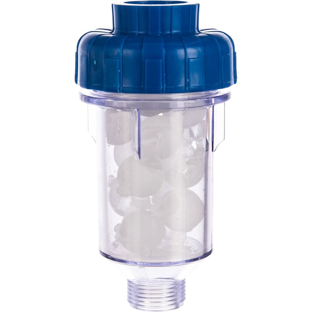 Магистральный фильтр PRIO Новая Вода B130 обеспечивает умягчение холодной воды с частично-растворимым реагентом - полифосфатом натрия (объем фильтра позволяет засыпать 150 г реагента). Фильтр монтируется в магистраль подвода холодной воды к стиральной машине. Прозрачный корпус фильтра заполняется кристаллами полифосфатов.
