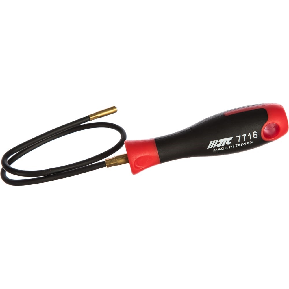 Магнитный гибкий держатель JTC 4 мм, длина 380 мм. 7716 предназначен для захвата мелких деталей. Инструмент используется для удаления металлической стружки из труднодоступных мест в автомобиле, например, из отверстий свечи зажигания. С помощью гибкого стержня держатель можно сгибать в любом нужном направлении. Мощность магнита составляет 1,35 Дж. Диаметр - 4 мм.