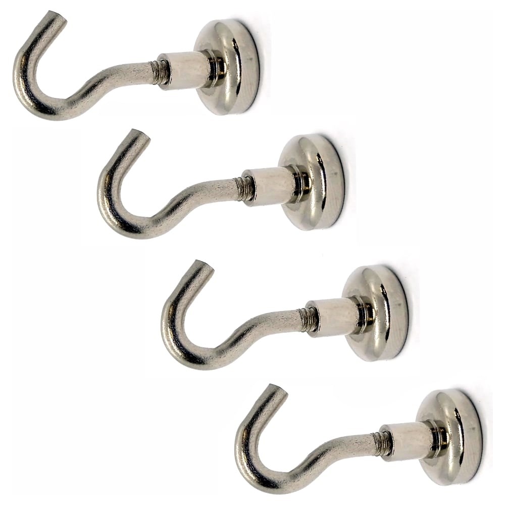 Магнитный крючок ПРОФ-МАГНИТ Е16, 4 шт. PMYP-E-16 имеет маленький размер, диаметр всего 16 мм и высоту 33 мм, может удержать на отрыв вес до 5,5 кг, а на сдвиг до 1,6 кг* (усилие измерялось на стальной пластине толщиной 15 мм). Как и у всех магнитный крючков у Е16 выкручивается стальной крюк и вместо него можно вкрутить болт, шуруп или шпильку с резьбой М4, а также заменить на более длинный крюк или же согнуть стандартный крюк в кольцо. Аккуратный и блестящий внешний вид дает возможность использовать его не только в гараже, подсобных помещениях но и в интерьере дома, квартиры. На этот магнитный крючок можно подвешивать грузы как горизонтально (к примеру, на металлический профиль на потолке) так и вертикально (к примеру, на дверцу холодильника). Обратите внимание, что для максимального магнитного сцепления, толщина металлической поверхности, к которой примагничивается крючок, должна быть не менее 5 мм. Магнитный крючок можно использовать как в помещении, так и на улице в любую погоду. Внимание! Усилие магнитного крючка на отрыв или сдвиг напрямую зависит от поверхности, к которой он примагничивается. Если металл тонкий (тоньше 15 мм), неровный, имеет лакокрасочное покрытие или ржавчину, то сила магнита будет меньше. К примеру, на тонкой дверце холодильника, имеющей лакокрасочное покрытие, усилие на отрыв составляет 2,5 кг, а на сдвиг около 0,3 кг.