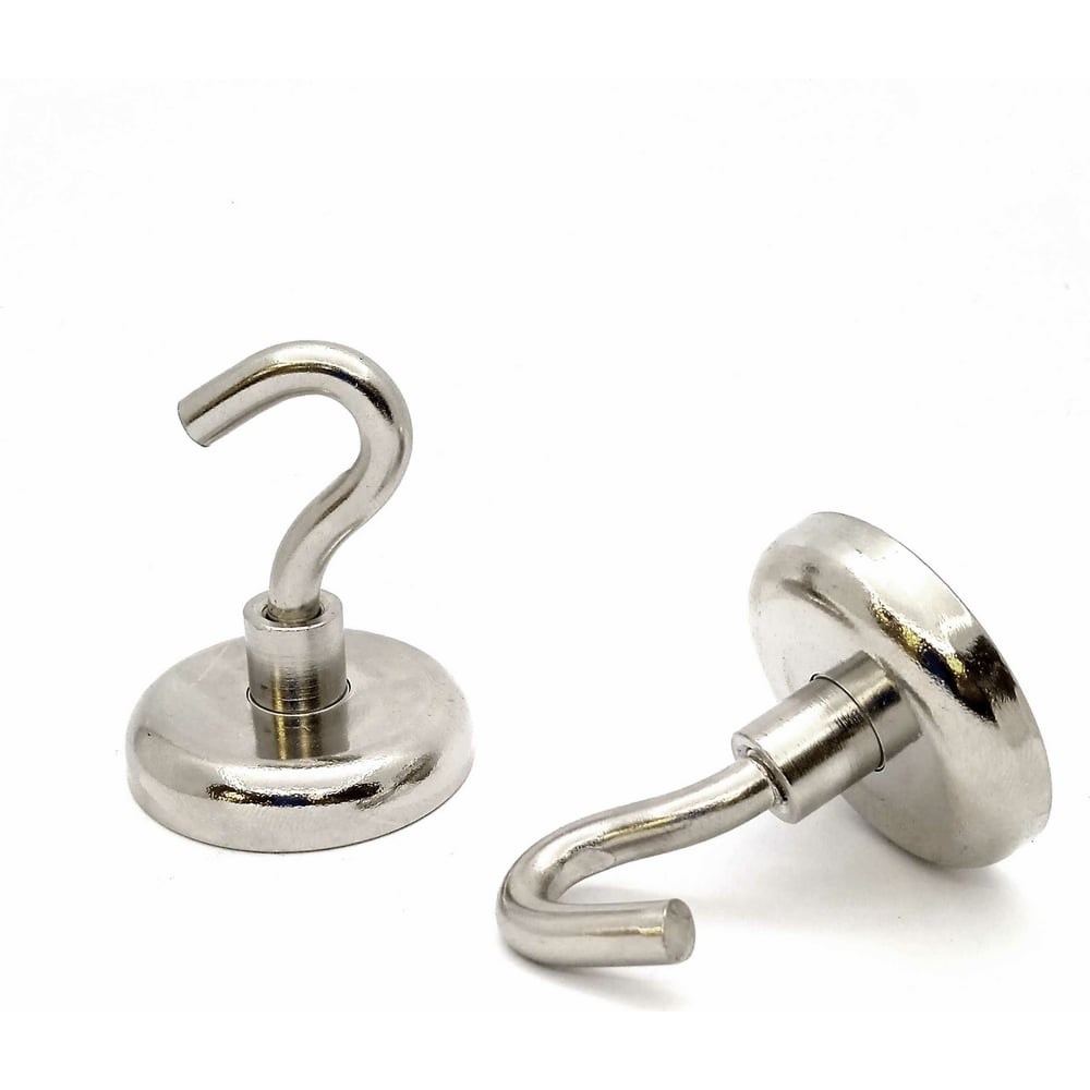 Магнитный крючок ПРОФ-МАГНИТ Е36, сцепление 41 кг*, 2 шт. PMYP-Е-36 - очень мощный магнитный крючок на основе неодимового магнита. На этот магнитный крючок можно повесить любой груз. Этот магнитный крепеж имеет стальной крюк, который можно выкрутить и вкрутить вместо него любой другой метиз с резьбой. Все магнитные крючки, в независимости от размера, можно подвешивать к потолку (горизонтально) или к стене (вертикально). Для эффективного магнитного сцепления, толщина металлической поверхности, к которой примагничивается магнитный крючок, должна быть не менее 5мм. Магнитный крючок можно использовать как в помещении, так и на улице в любую погоду. * Обратите внимание, что усилие магнитного крючка на отрыв или сдвиг напрямую зависит от поверхности, к которой вы его примагничиваете. Если металл тонкий (тоньше 15мм), неровный, имеет лакокрасочное покрытие или ржавчину, то сила магнита будет меньше.