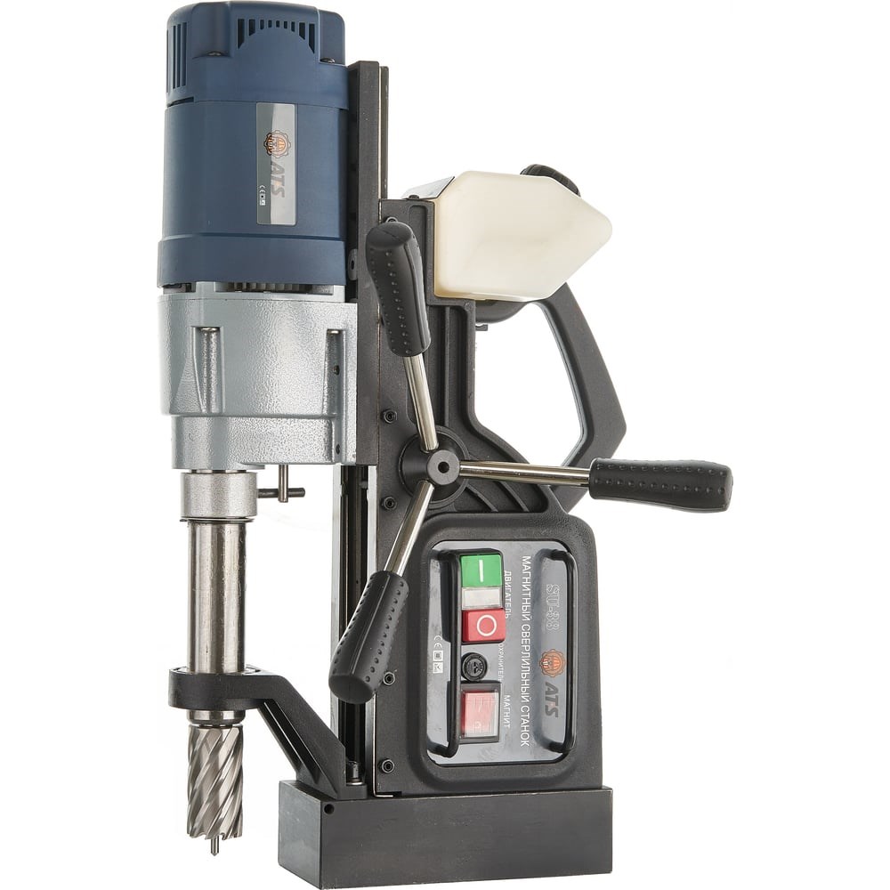 Магнитный сверлильный станок AT-S SU-38 используют для сверления и зенкования отверстий корончатым и спиральным сверлом. Рукояти с пластиковыми наконечниками обеспечивают удобный захват. Система внутренней прокладки кабеля предусмотрена для работы в ограниченном пространстве. Бачок для подачи воды устанавливают в пазовые углубления, расположенные на станине. Прочный кожух защищает от вылета стружки и разбрызгивания СОЖ во время работы. Модель поставляется в кейсе для переноски и компактного хранения. Электромагнит с увеличенной прижимной силой осуществляет надежное крепление станка к металлической поверхности.