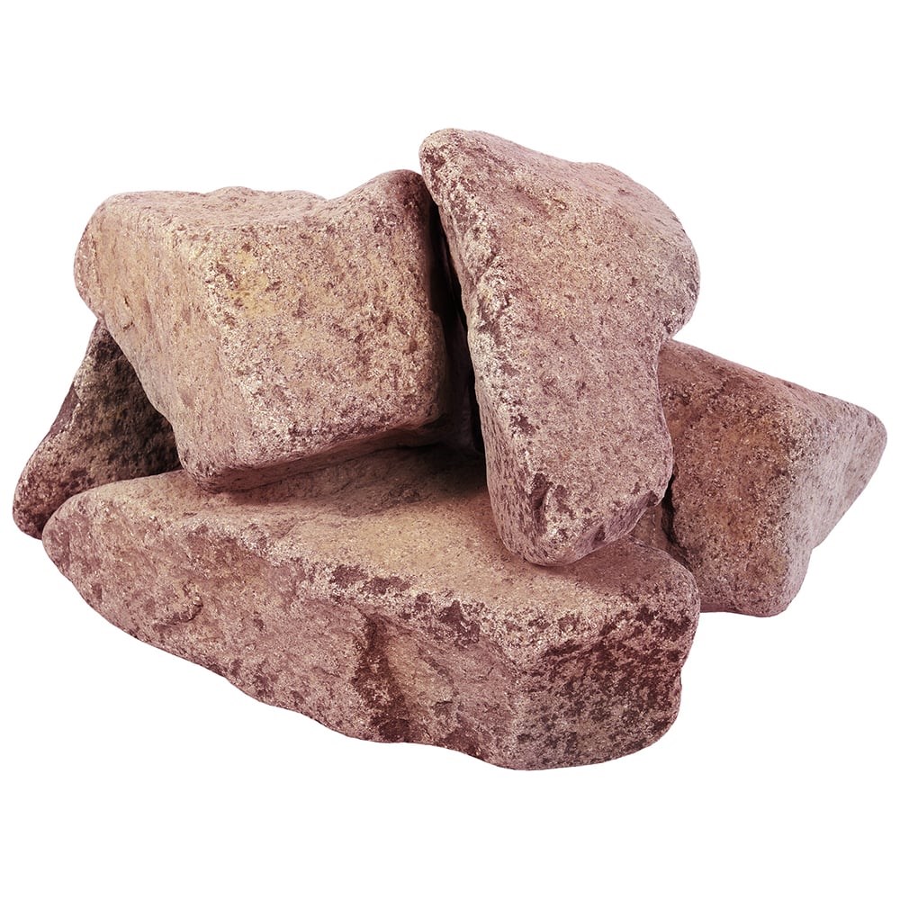 Малиновый обвалованный камень Банные Штучки Кварцит в коробке, по 20 кг 33091 обладает большой теплоемкостью. Выдерживает большие перепады температуры, поэтому не растрескивается и не деформируется. Прочность камня гарантирует длительную эксплуатацию. Самое главное требование для камня - большая теплоемкость. Данный камень средней фракции (70-140 мм).