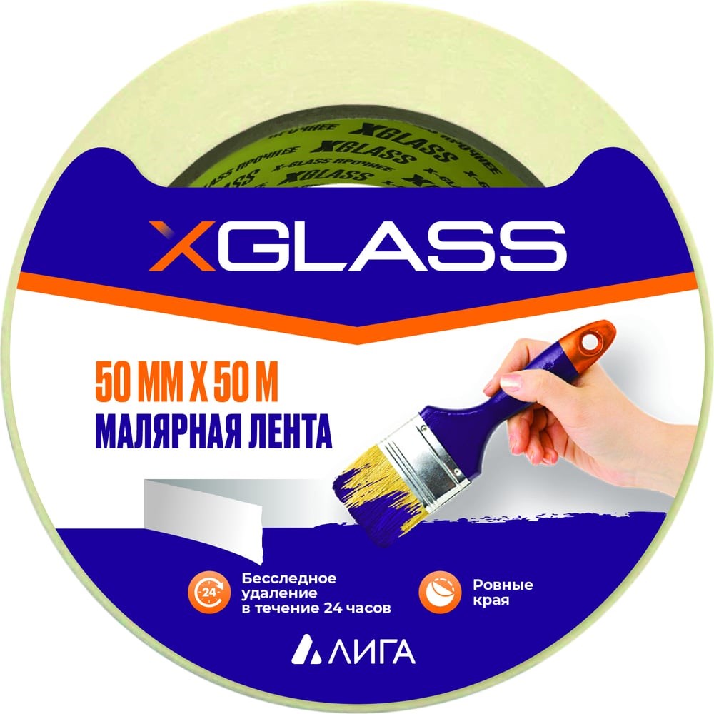 Малярная клейкая лента XGLASS 50 мм, 50 м - довольно распространенный строительный материал. Применяется для защиты поверхностей при проведении малярных, штукатурных и любых других видов работ, где требуется добиться ровных линий. Для заклейки окон, а также при окрашивании автомобиля. Подходит для работы как внутри, так и снаружи помещения.Применяется в качестве защитного слоя для стеклянных поверхностей или любых других материалов при их транспортировке.Подходит для заклеивания и запечатывания гофро-коробов, а также для нанесения маркировки на любых поверхностях.Обладает устойчивостью к растворителям и влаге.