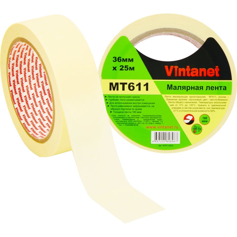 Малярная лента Vintanet 120С, MT611, 160 мкм, 36мм х 25м MT6113625 состоит из крепированной бумаги светло-бежевого цвета, покрытой каучуковым адгезивом. Крепированная основа обеспечивает отличное прилегание в углах. Каучуковый адгезив обладает мгновенной адгезией. Лента создана для внутреннего использования и не должна долго находится под воздействием окружающей среды (солнце, дождь), т.к. это может привести к сложностям при удалении. Применяется в покраске, при отделочных работах, в электронной промышленности. Чистое удаление с большинства поверхностей. Лента не пропускает краску, равномерно закрашивается, не образуя подтёков по краям.