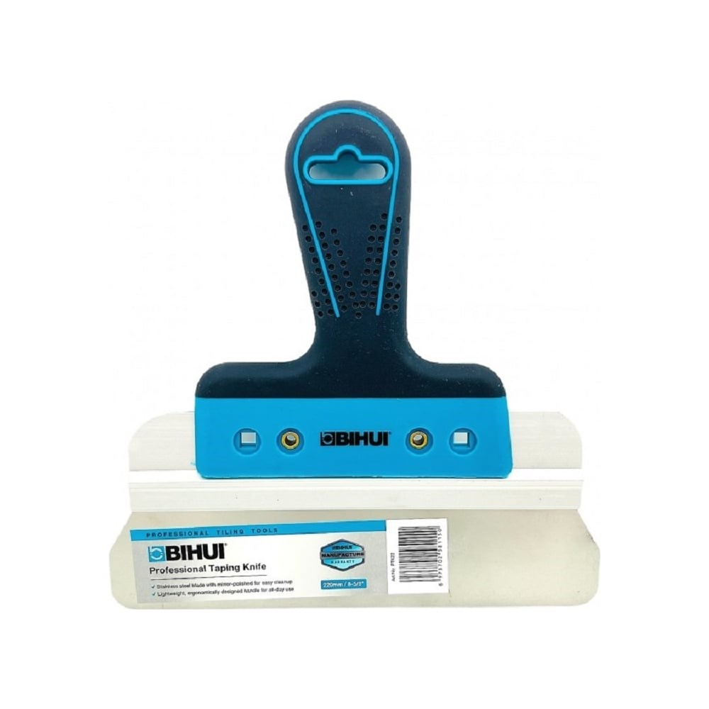 Малярный шпатель BIHUI 220 мм PTK22 имеет ширину 220 мм и толщину 0,5 мм. Лезвие шпателя изготовлено из нержавеющей стали. Пластиковая прорезиненная ручка обеспечивает комфортное использование. Особенностью шпателя является идеально ровное лезвие, которое позволяет качественно нанести и выровнять строительную смесь.