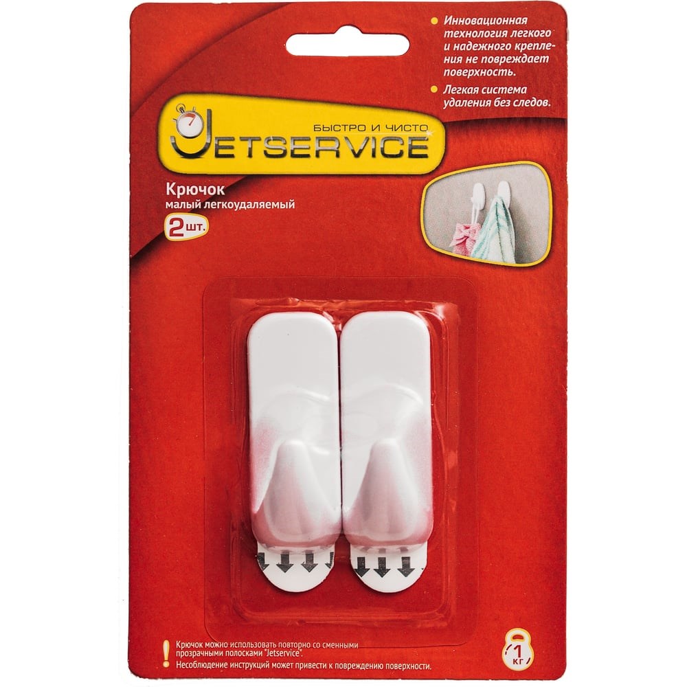 Крючок Jetservice малый легкоудаляемый 2 шт. 77702 предназначен для организации хранения различных мелких предметов в доме. Изделие легко и надежно крепится. Удалить крючок можно быстро и бесследно, достаточно просто потянуть клейкую полоску за язычок вниз. Возможно повторное использование аксессуара со сменными клеевыми полосками Jetservice (приобретаются отдельно).
